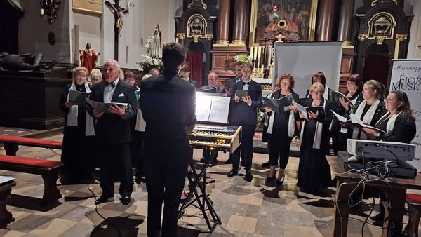 Wczoraj zakończyliśmy hucznie tegoroczną edycję festiwalu Muzyczne Podróże 2025. W koncercie wziął udział chór Lutnia z parafii św. Joachima w Sosnowcu pod kierunkiem Tadeusza Barylskiego. W pierwszej części usłyszeliśmy dzieła organowe , które po mistrzowsku i z werwą wykonał Tadeusz Barylski. Drugą część koncertu chór rozpoczął od chorału J.S. Bacha aby przejść przez repertuar maryjny różnych epok. Zwieńczeniem koncertu były dwa utwory autorstwa Tadeusza Barylskiego Ave Maria oraz Hymn do św. Joachima.